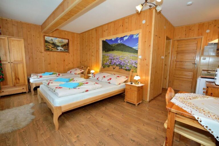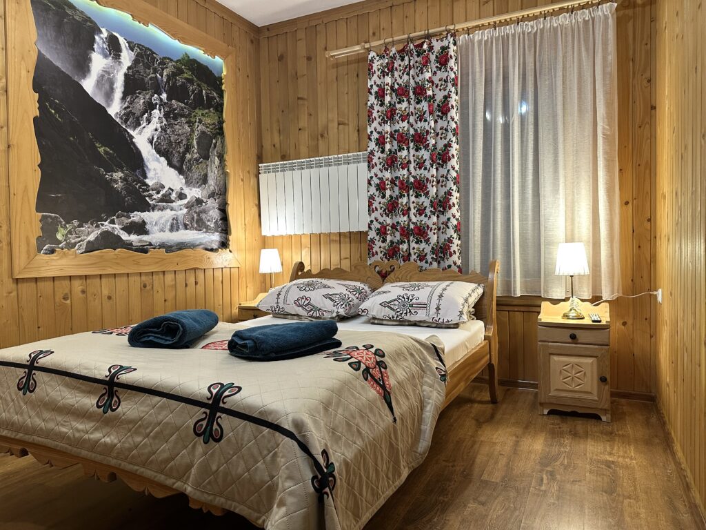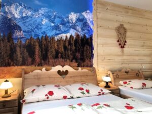 – dwie osobne sypialnie (góralskie łoża małżeńskie), 2 osobowa i trzyosobowa.