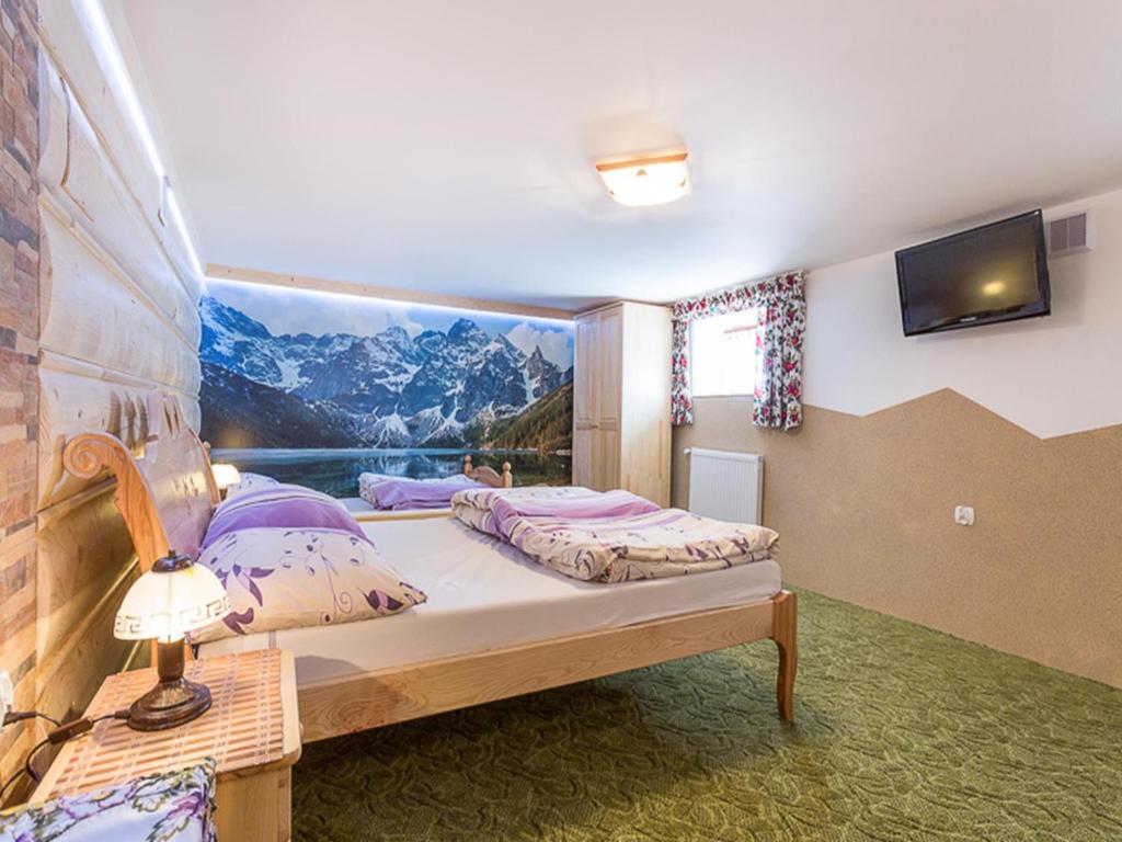 Regionalny wystrój pokoi i przytulne wnętrza w stylu Zakopanego.