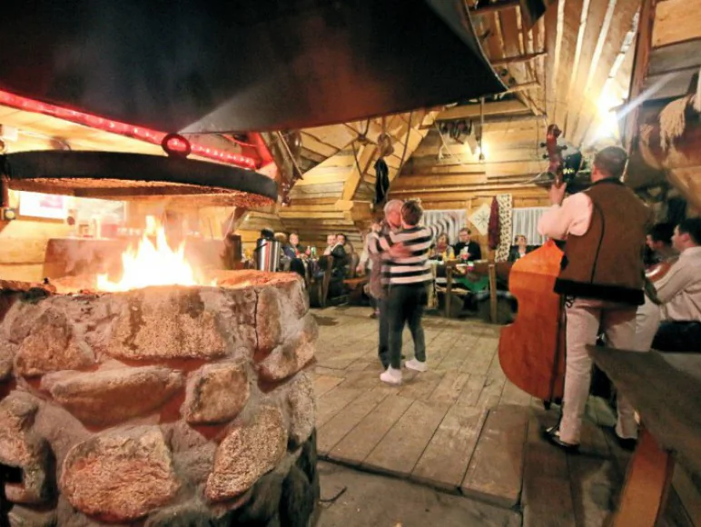 - 100 metrów sklep, dwie karczmy regionalne ( Karczma Muzykancka 50m, Karczma Góralsko 250m), pizzeria
